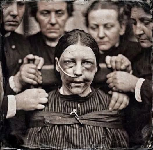 كان ردّ السجن وحشيًا: إطعامها قسرًا ثلاث مرات يوميًا. قيّدها حراسٌ بأحزمة جلدية إلى كرسي. فتح الحراس فكّها بملاقط معدنية. دُفع أنبوب مطاطي في حلقها إلى معدتها، وصُبّ فيها طعام سائل. بعد أسابيع، تقيأت أليس دمًا.