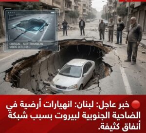 شهدت منطقة الضاحية الجنوبية لبيروت حوادث انهيارات أرضية خطيرة، أدت إلى ابتلاع طرقات كاملة وسقوط مركبات مدنية في فجوات سحيقة. تشير البيانات التقنية المستخرجة من أجهزة المسح الجيولوجي إلى اكتشاف “فراغات تحت أرضية حرجة”