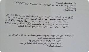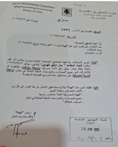 بالصورة : صدر منذ أيام قرار ملتبس ومفاجىء عن هيئة التحقيق الخاصة في مصرف لبنان حمل الطابع السري وجه الى كافة المصارف والمؤسسات المالية العاملة في لبنان والى المدعي العام التمييزي والهيئة العليا قضى بتحرير كافة الحسابات المصرفية في لبنان العائدة لقائد الجيش السابق العماد جان قهوجي وأفراد عائلته مع اعادة السرية المصرفية اليها رغم احتجاز ودائع المودعين منذ اندلاع الثورة في لبنان عام ٢٠١٩ وحتى تاريخه